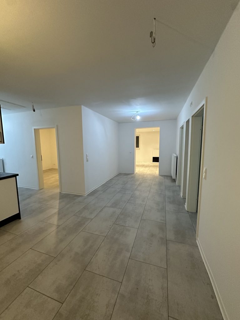Kernsanierung einer ca. 140 m² großen Wohnung im 2. Obergeschoss in Kiel-Meimersdorf mit vollständiger Entkernung und Neuaufbau. Es wurden neue Fenster eingebaut, Wände und Mauerwerke angepasst sowie Estrich eingebracht. Abschließend folgten hochwertiger Vinylboden, ein komplett neues Badezimmer und die bezugsfertige Fertigstellung der modernisierten Wohnung.